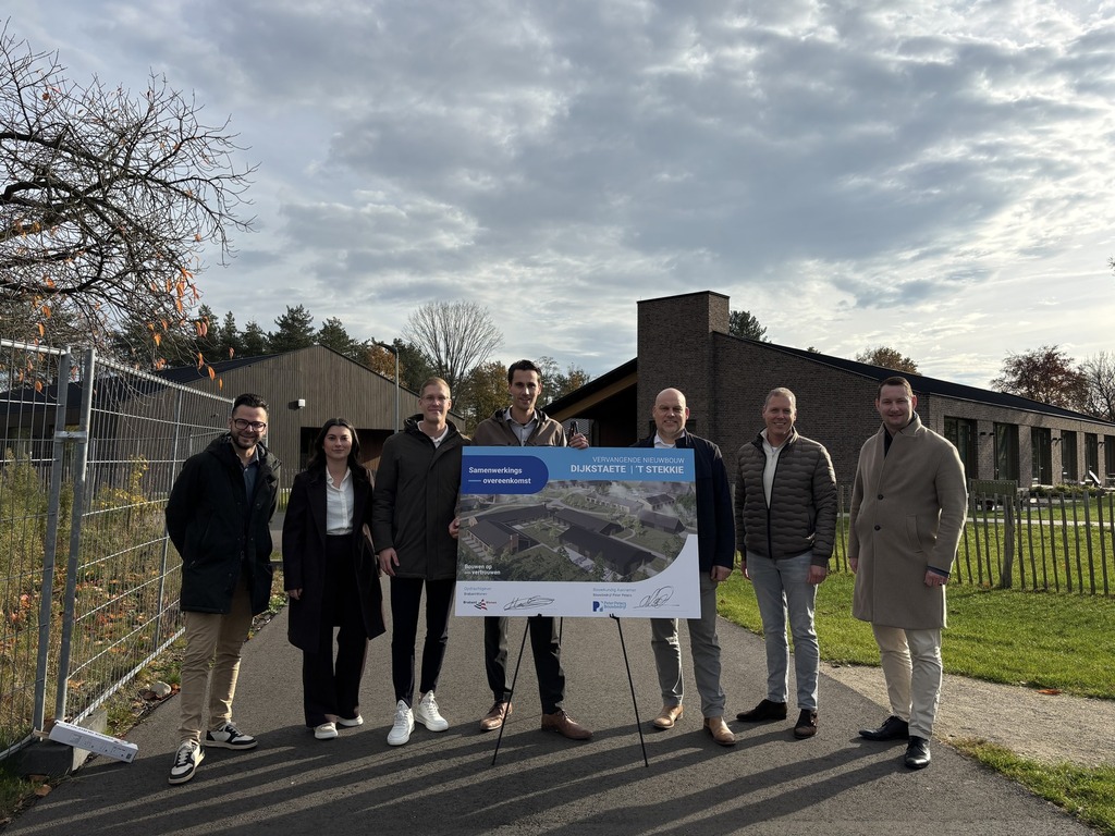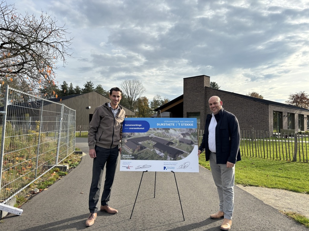 Voor Dijkstaete bouwen we 3 woongroepen voor in totaal 27 bewoners. Dit zijn bewoners met de diagnose Korsakov. Elke woongroep is kleinschalig. Bewoners hebben een eigen studio met sanitair, pantry en een terras. Verder delen ze gemeenschappelijke ruimtes zoals de woonkamer en keuken. Daarnaast komt er nieuwbouw voor Ons Stekkie. Een locatie voor dagbehandeling van cliënten met dementie. Hiervoor bouwen we 2 grote huiskamers om activiteiten te houden. De drie woongroepen en dagbehandeling vormen samen een woonhofje.